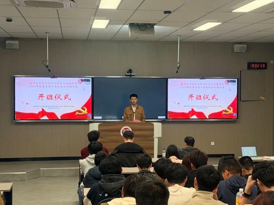 12月11日晚,福州大学化学科学与工程学部2025年秋季入党积极分子培训班(总10期)开班仪式暨第一讲在旗山校区教学楼西1-201顺利举行。仪式由材料学院团委副书记张庭士老师主持,环境与安全工程学院党委刘朝晖副书记出席,全体培训班学员参加。