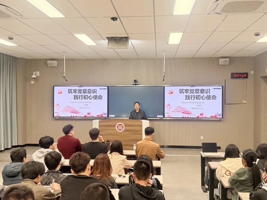 环境与安全工程学院党委刘朝晖副书记为学员们开展了主题为《筑牢党章意识,践行初心使命》的第一讲培训。刘朝晖副书记以党章学习为核心展开授课,首先梳理了中共党史上六部具有里程碑意义的党章的发展脉络,从法律地位、产生程序与功能作用三个维度,阐释学习并遵守党章的重要性。同时,他要求学员将党章学习作为常态化任务,在学习、工作中以党章标准严格要求自己,树立尊崇党章、践行党章的自觉。最后,刘朝晖副书记号召学员们坚定理想信念,提升理论素养,筑牢党章意识,践行初心使命,以青春之我创造青春之中国!