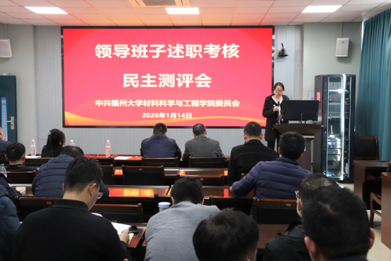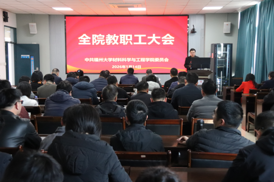 2026年1月14日下午,学院在材料楼404召开全院教职工大会,会议由学院党委书记罗涛主持,全院教职工参加,校党委组织部吴雨桐同志列席会议。