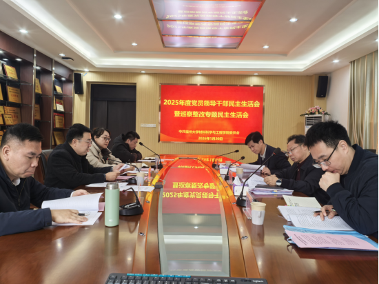 为深入学习贯彻习近平新时代中国特色社会主义思想和党的二十届四中全会精神,锲而不舍落实中央八项规定精神,推进作风建设常态化长效化,材料学院党委于1月30日上午在嘉锡楼313召开2025年度民主生活会。校党委2025年度民主生活会督导组第五组组长、校纪委书记郑煦林,督导组第五组成员、校党委正处级组织员兼巡察办公室主任钟钛申,校党委组织部党务管理科科长陈育芳到会指导,学院党委领导班子成员参加会议,会议由学院党委书记罗涛主持。