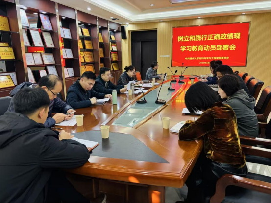 2026年3月12日,材料学院在嘉锡楼313会议室召开树立和践行正确政绩观学习教育动员部署会。会议由学院党委书记罗涛主持,学院党委委员参加了会议,部分学院中层干部、师生党支部书记、教师党员代表列席会议。