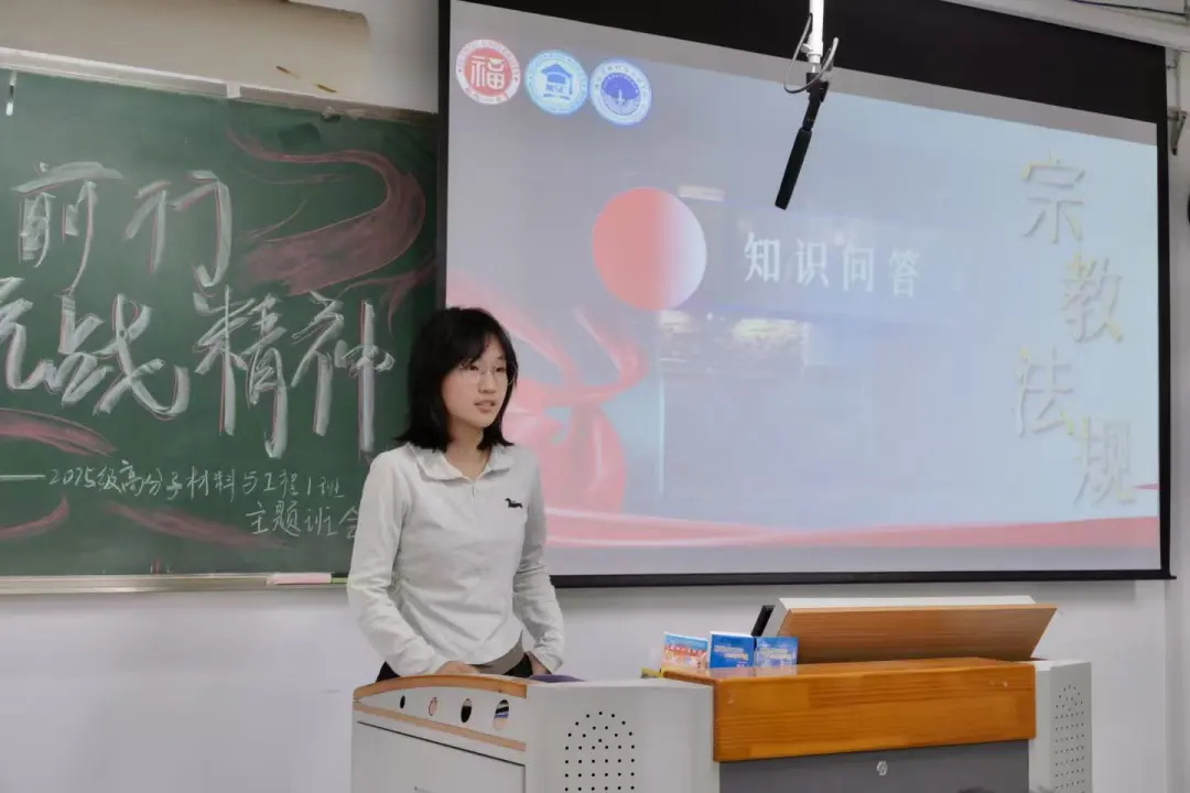 在反邪教教育环节,文娱委员郭佳璇同学巧妙运用互动问答形式,为同学们解读宗教相关政策与法律法规,强调宪法保障宗教信仰自由的同时,也明确宗教活动必须在法律框架内有序进行。轻松有趣的互动问答以及精心准备的问答奖品,使得同学们参与互动的积极性高涨,也让反邪教知识深入人心。