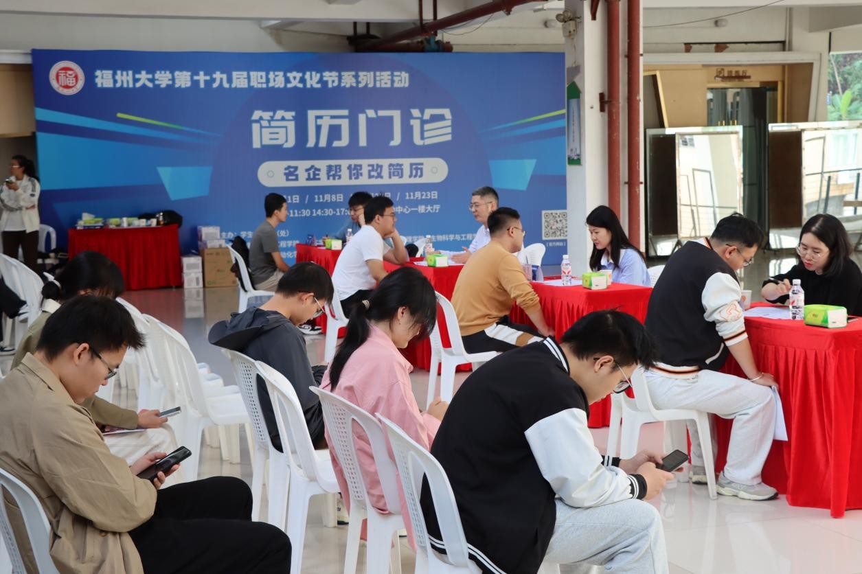 为帮助同学们提升就业竞争力,近日,“简历门诊”活动在福州大学旗山校区大学生素质拓展中心一楼大厅成功举办。本次活动特别邀请到京东方、东方电气、永福电力、宁德新能源四家知名企业的专家,为同学们提供专业简历修改指导与精准点拨,助力同学们收获切实有效的求职建议。