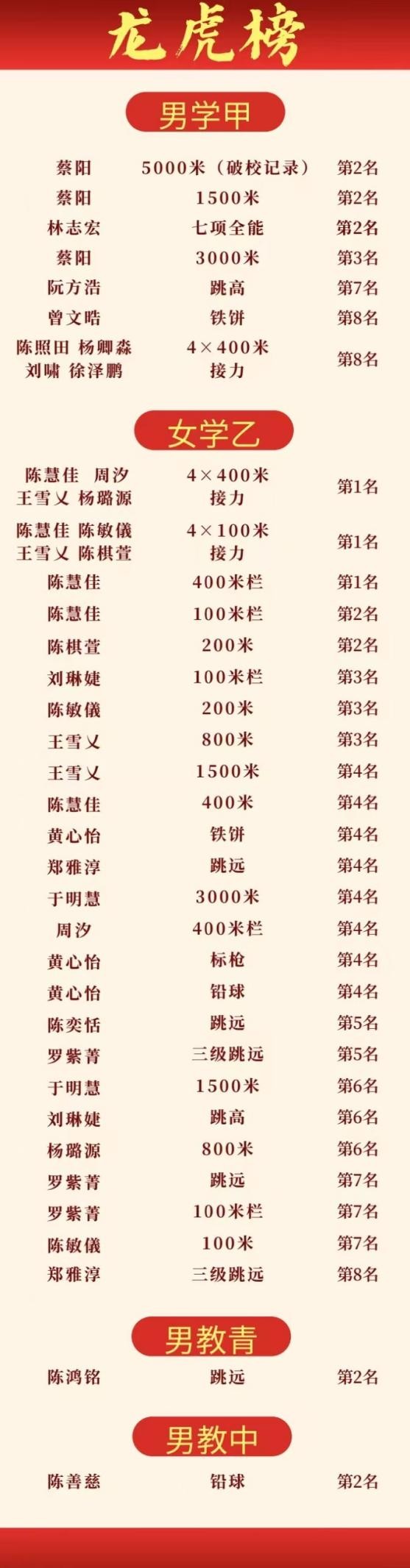 每一块奖牌的背后,都藏着平日里刻苦训练的无数汗水,闪耀着赛场上不畏强手、敢于超越的拼搏光芒。这份荣誉,更离不开领导、老师、工作人员与后勤团队共同织就的关怀之网——正是这份坚实后盾,让每位运动员都能心无旁骛,全力冲刺、勇攀高峰!