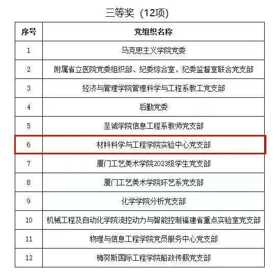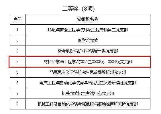 其中,材料科学与工程学院本科生2023级、2024级党支部荣获二等奖,材料科学与工程学院实验中心党支部荣获三等奖。