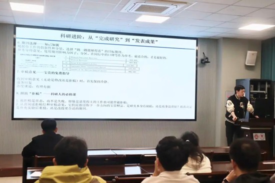 朱昱同学深入梳理了从课题发掘、文献研读到成果发表的全流程实践路径。科研方面,他以第一作者身份发表5篇论文,其中2篇发表于《Advanced Functional Materials》;个人发展方面,他屡获殊荣,包括博士研究生国家奖学金、校中期优秀学业奖学金,并获评“材料学院优秀学生干部”。他阐释道,持久的优秀源于良好心态的涵养与综合素养的积淀,科研之路是对好奇心的坚守与执行力的锤炼。他还细致拆解了从“完成研究”到“成功发表”的内在逻辑,为同学们提供了兼具思想深度与实践价值的宝贵经验。