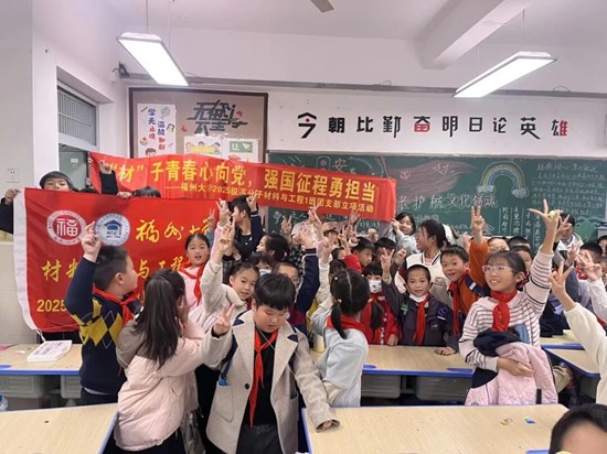 为深入践行党的二十届四中全会关于深化科教协同育人的精神要求,以科学赋能科普育人,用温情浸润童心成长,厚植青少年科学探索根基,近日,材料科普协会联合我院2024级高分子材料与工程1班团支部、2025级高分子材料与工程1班团支部,走进福州大学附属实验学校,开展了一场以“材承文脉启童智,科载温情润童心”为主题的团立项系列活动之科普支教活动。本次活动以“寓教于乐、知行合一”为主题,设置趣味实践、原理科普、互动认知三大核心环节,引导孩子们在沉浸式体验与具象感知中体悟材料科学魅力,激发探索热情与创新思维,厚植科技报国初心。