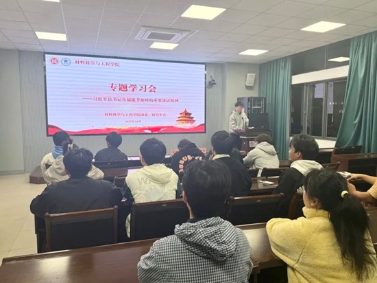 为引领广大研究生团员及青年学子紧跟党的创新理论指引,材料科学与工程学院团委、研究生会在材料楼成功举办专题学习会,深入学习习近平总书记在福建考察时的重要讲话精神、共青团第十九次全国代表大会精神,以及习近平总书记致全国青联十四届全委会和全国学联二十八大的重要贺信和党中央致词精神。材料学院研究生会全体成员以饱满的热情参与了本次学习研讨。