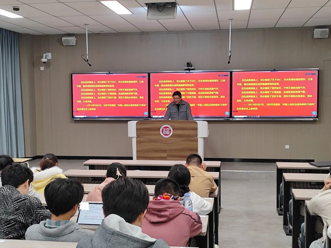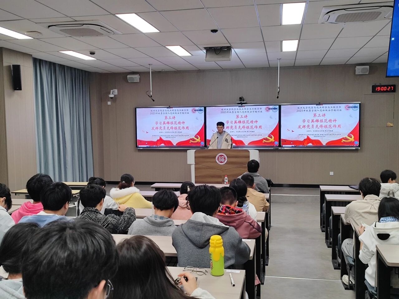 12月13日晚,材料学院党委党校2025年秋季入党积极分子培训班第三讲,于西1-201教室顺利开讲。马克思主义学院潭亮副教授以《学习英雄模范精神,发挥党员先锋模范作用》为主题,带领学员回溯不同历史时期共产党人的先锋事迹,深刻剖析英雄模范精神的核心内涵与时代价值。授课过程中,潭亮副教授着重强调,入党积极分子当从英雄模范的光辉事迹中汲取奋进力量,在学习钻研与社会实践中主动担当,积极作为,时刻以党员标准严格规范自身言行,提前践行党员先锋模范的责任与使命。
