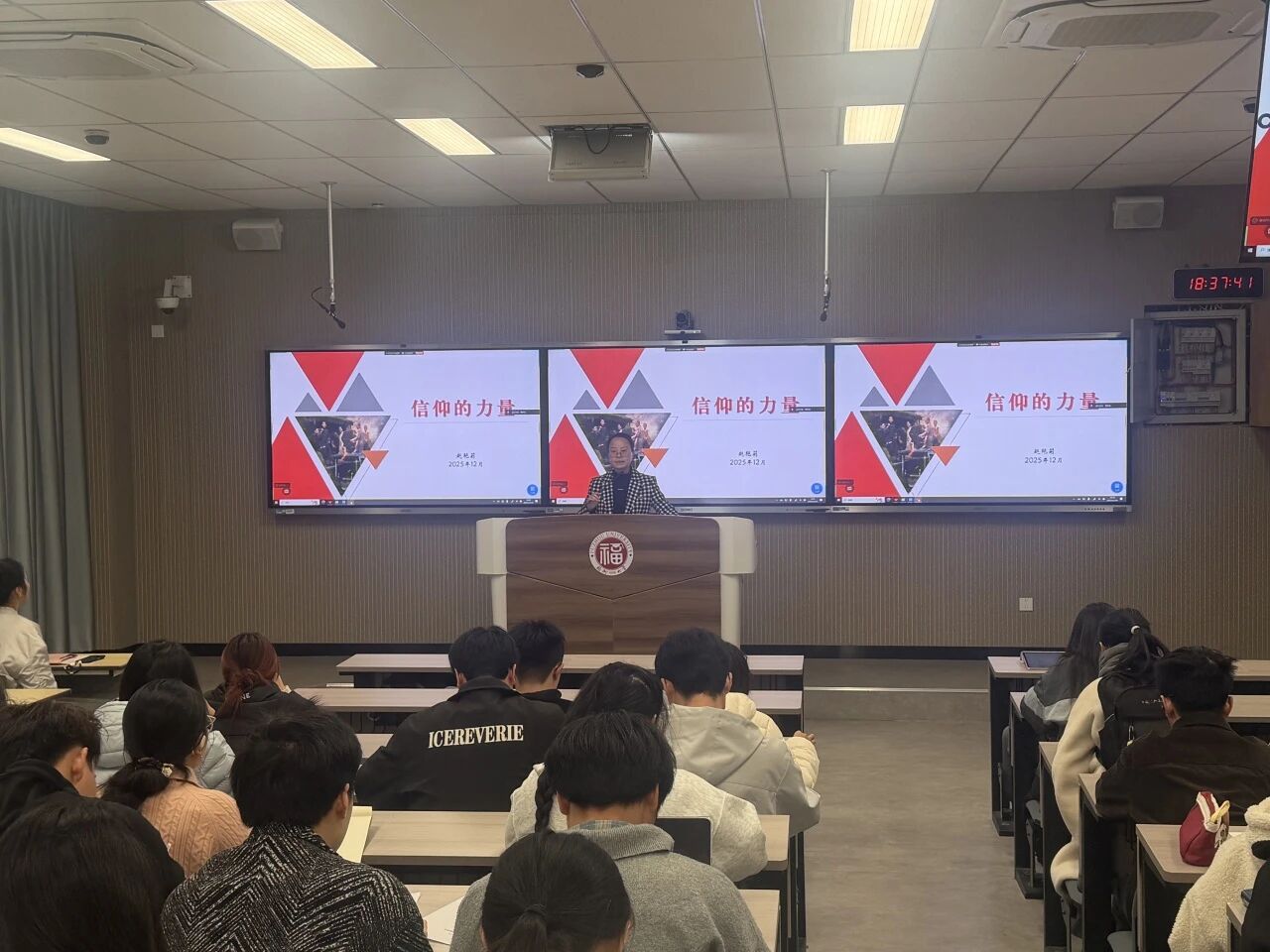 12月14日晚,材料学院党委党校2025年秋季入党积极分子培训班第四讲在西1-201教室顺利开讲。福州大学校党委组织部赵艳莉副教授以《信仰的力量》为主题,聚焦“什么是正确的入党动机”、“为何要坚定信仰”、“如何筑牢信仰根基”三个问题,结合现实案例剖析错误入党动机的危害,系统讲解中国共产党的发展历程与信仰内核。她鼓励学员,既要追求组织上入党,更要实现思想上入党,以坚定的信仰指引前行方向,主动向党组织靠拢。