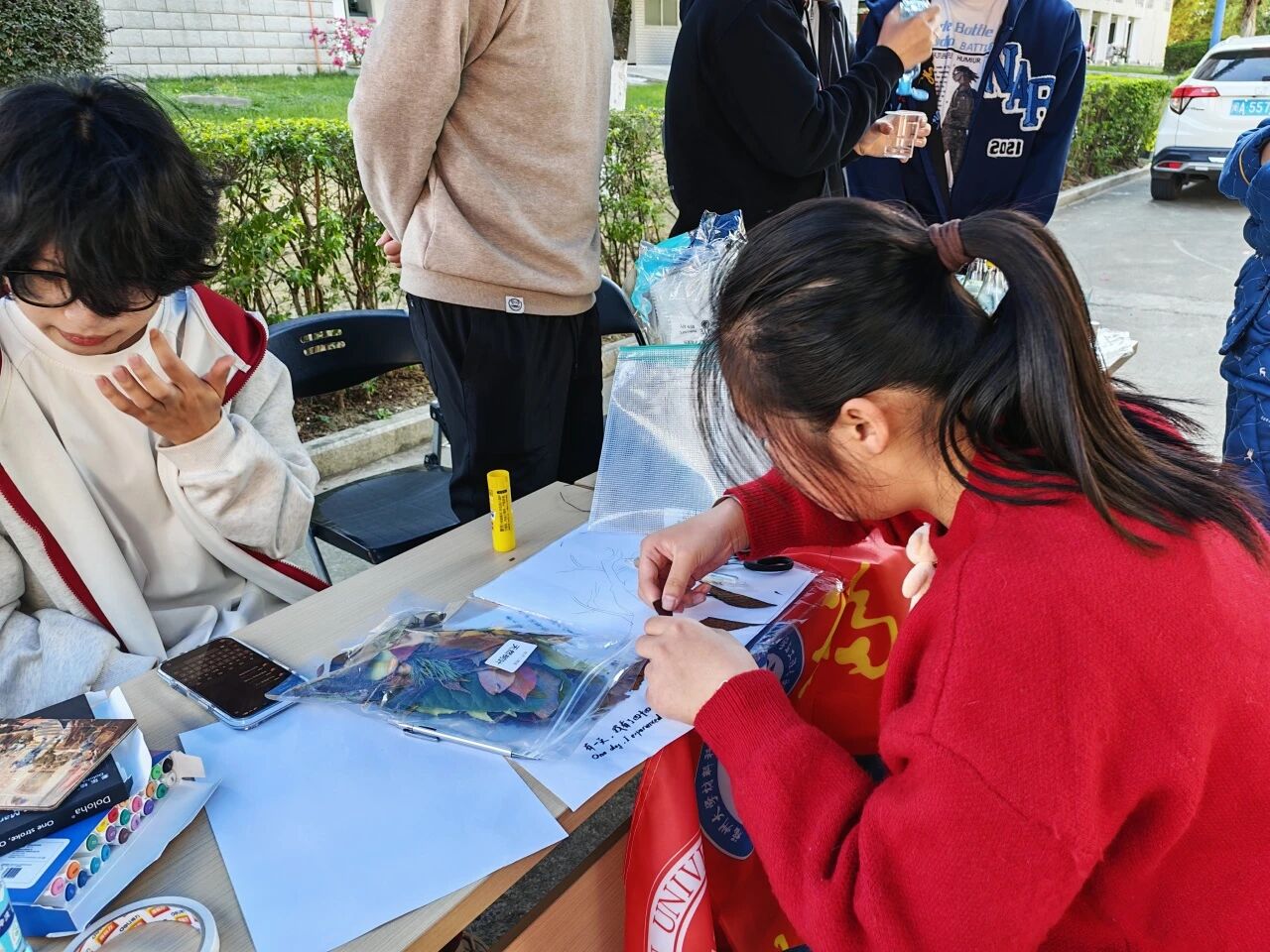 为深化科普传播实效、增添互动趣味,团支部在福州大学铜盘校区内举办科普摆摊体验活动。现场设置趣味实验、落叶拼贴、党的拼图等互动摊位,吸引众多同学积极参与。
