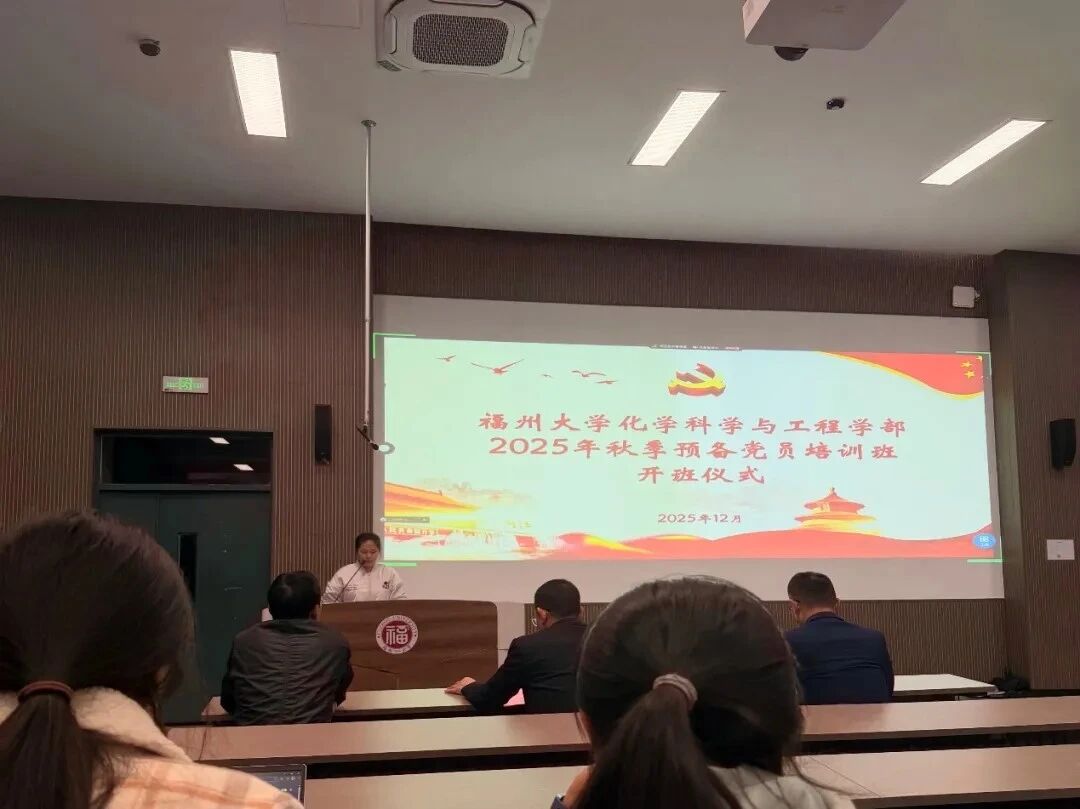 2025年12月8日至12月20日,福州大学化学科学与工程学部组织开展了2025年秋季学期预备党员培训班。本次培训为期两周,课程内容丰富详实、培训形式灵活多样,为全体学员带来了一场充实而深刻的学习之旅。2025年12月8日至12月20日,福州大学化学科学与工程学部组织开展了2025年秋季学期预备党员培训班。本次培训为期两周,课程内容丰富详实、培训形式灵活多样,为全体学员带来了一场充实而深刻的学习之旅。