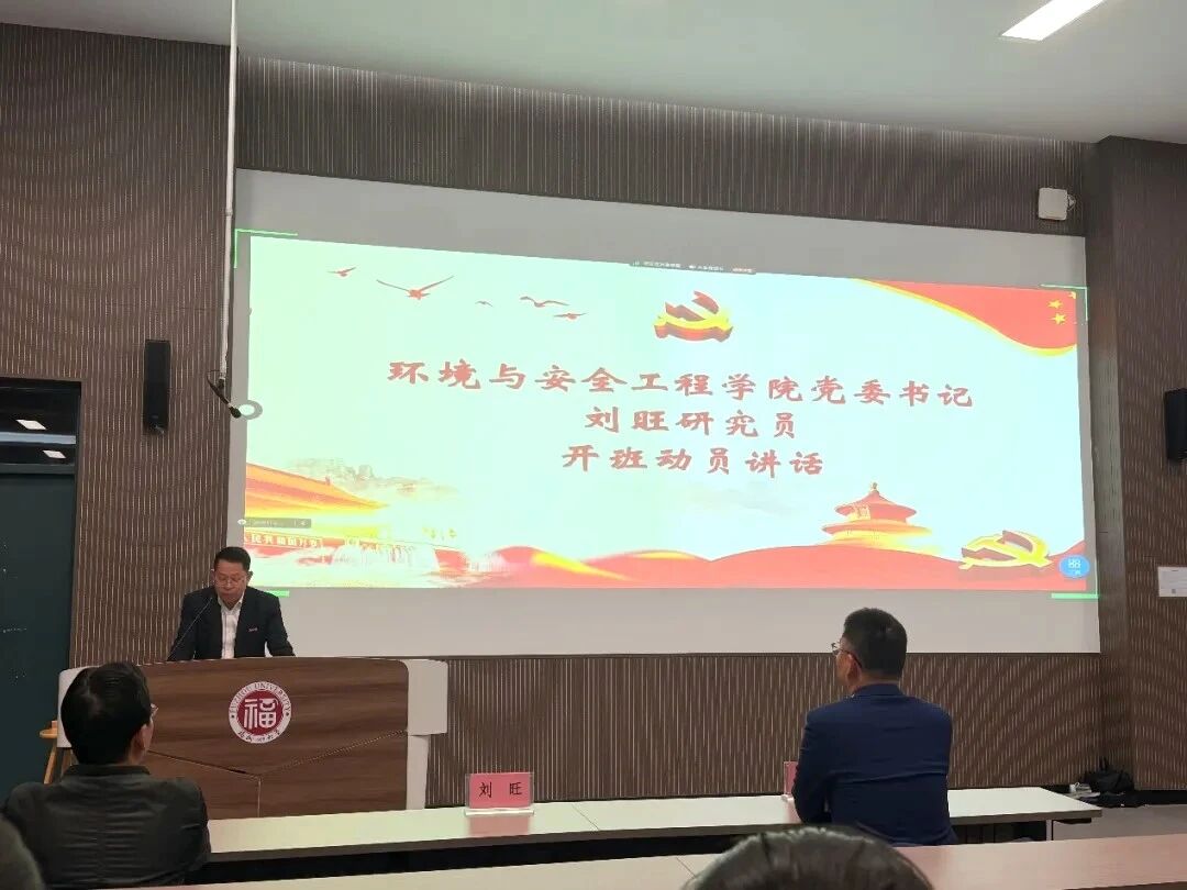 福州大学化学科学与工程学部2025年秋季预备党员培训班(总第9期)开班仪式在旗山校区教学楼东3-100顺利举行。本次培训邀请到环境安全与工程学院党委书记刘旺、环境安全与工程学院党委副书记刘朝晖、化学学院党委副书记柯江锋参与,培训班全体学员参加,由环境安全与工程学院黄甜恬老师主持。