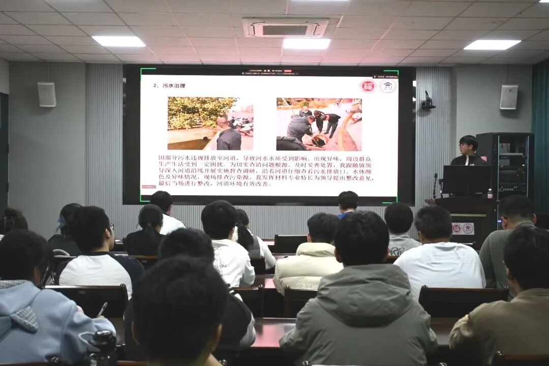 随后,陈垚达同学分享了自己在惠安县小岞镇宣教办的实习经历。在跟随工作人员走访慰问困难群众时,他耐心倾听群众诉求,用温暖的话语给予慰藉;在参与河道污水治理排查时,他发挥材料专业的特长,结合所学知识对污水治理方案提出了兼具可行性与创新性的整改建议。陈垚达坦言,这段基层实习经历让他深刻体会到“理论与实践结合”的重要性,不仅将书本知识转化为了解决实际问题的能力,更在与基层群众的接触中涵养了为民服务的情怀,实现了个人的成长与蜕变。