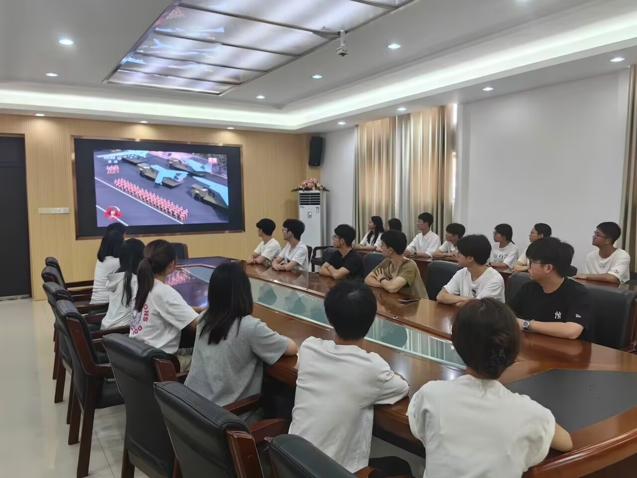 2025年9月3日上午9时,纪念中国人民抗日战争暨世界反法西斯战争胜利80周年大会在北京天安门广场隆重举行。福州大学材料科学与工程学院积极响应,在嘉锡楼313会议室开展九三阅兵主题观礼座谈会。学院团委副书记张庭士老师、辅导员张丽娟老师、肖凯尹老师以及学生代表共同收看大会直播,铭记历史,见证祖国繁荣。