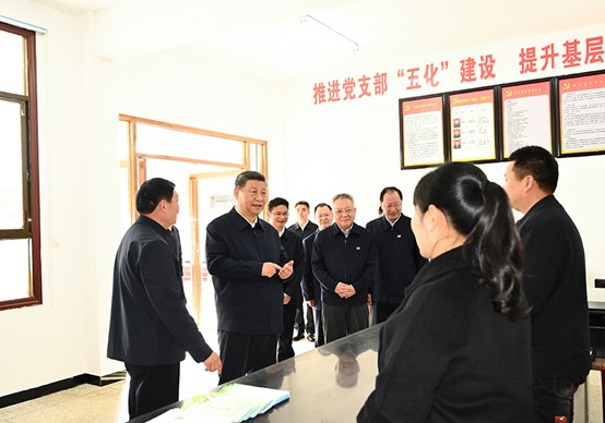2024年3月18日至21日,中共中央总书记、国家主席、中央军委主席习近平在湖南考察。这是19日下午,习近平在常德市鼎城区谢家铺镇港中坪村党群服务中心了解当地为基层减负、提升基层治理效能等情况。新华社记者 燕雁 摄